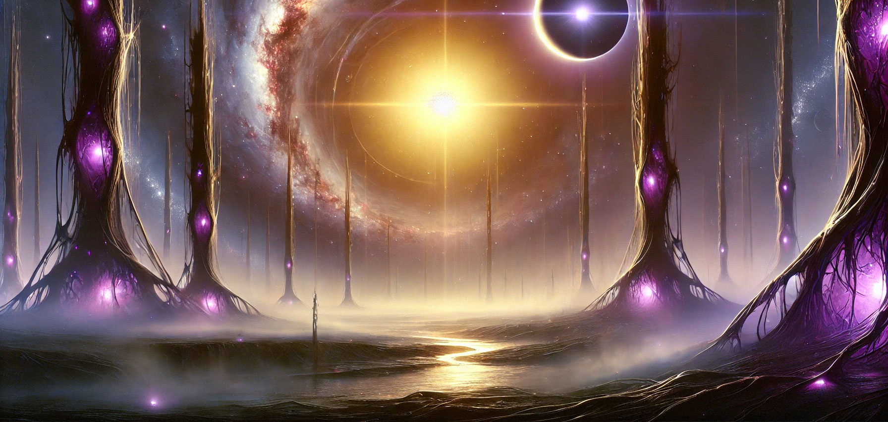 Twin suns cast their gleam, and rivers shimmer like a sigh,