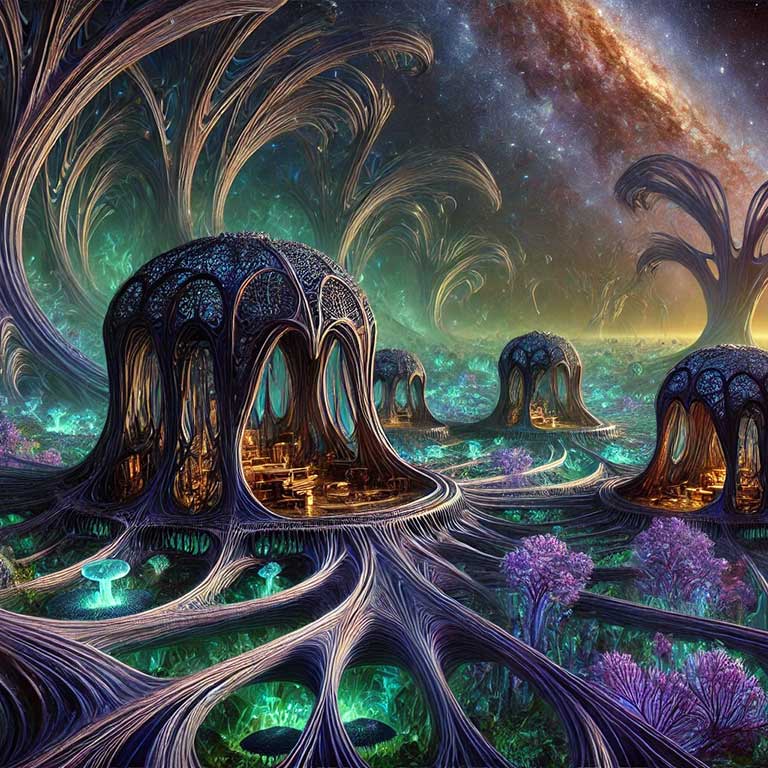 As their civilization flourished, they built the first settlements—cities shaped by living architecture that fused advanced technology with nature. These structures adapted to the forces around them, embodying the harmony between knowledge and the cosmos.